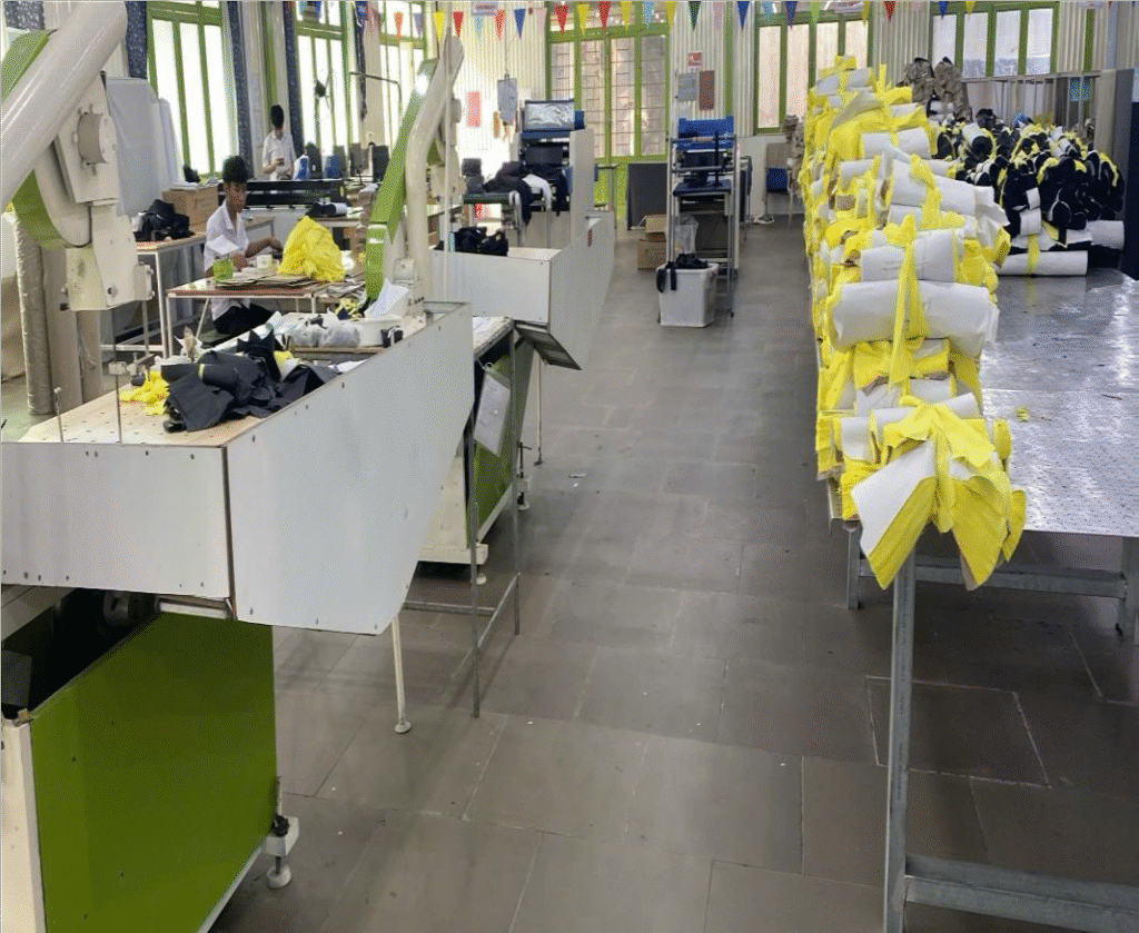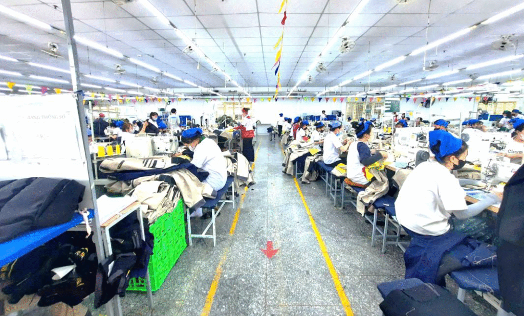 Area: 2,099 m2. Labor: 225 workers. Main products: Trousers Production capacity: 225,000 pieces/month.